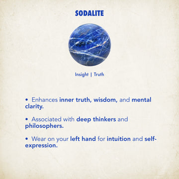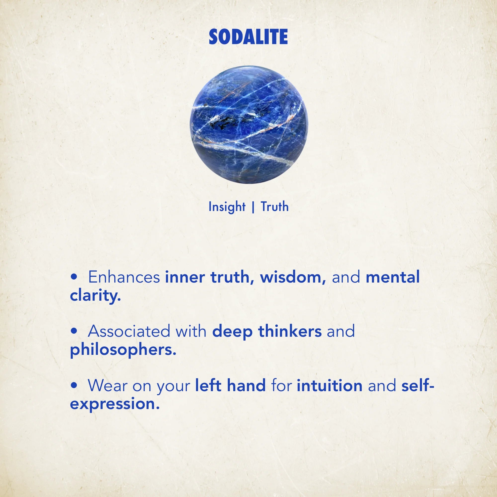 Sodalite is a deep blue stone known for enhancing intuition, communication, and emotional balance.