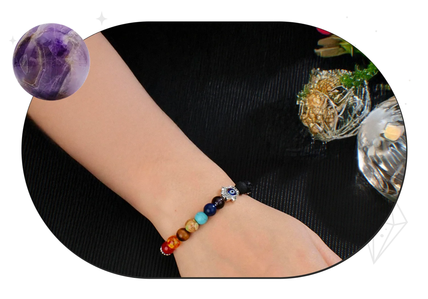 At Celestia, we craft with purpose and soul. The 7 Chakra Hamsa Lava Natural Stone Bracelet harnesses the vibrant energies of the 7 Chakra Hamsa Lava stones to align your energy centers, while the Hamsa symbol offers protection against negativity, and the lava beads provide stability and strength. Ideal for meditation, daily wear, or aromatherapy (thanks to lava’s porous nature), this spiritual bracelet empowers you to live in harmony and peace.