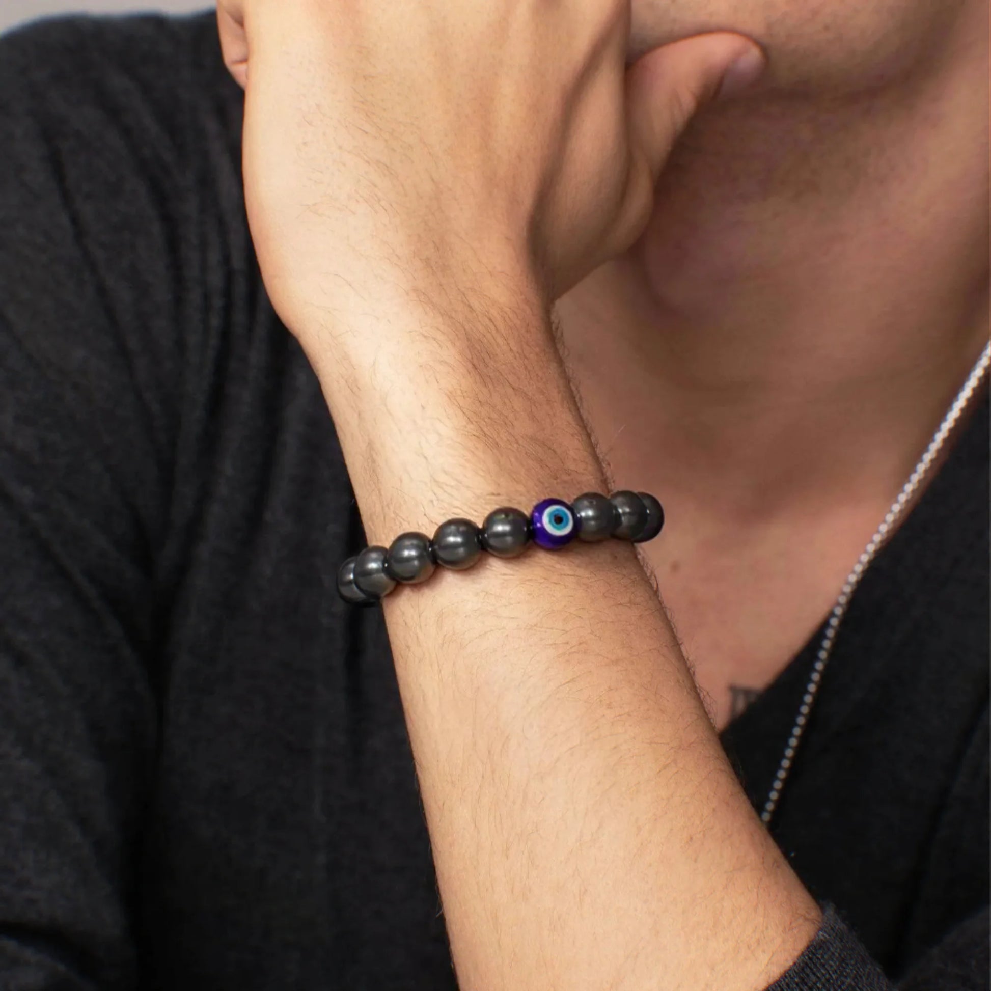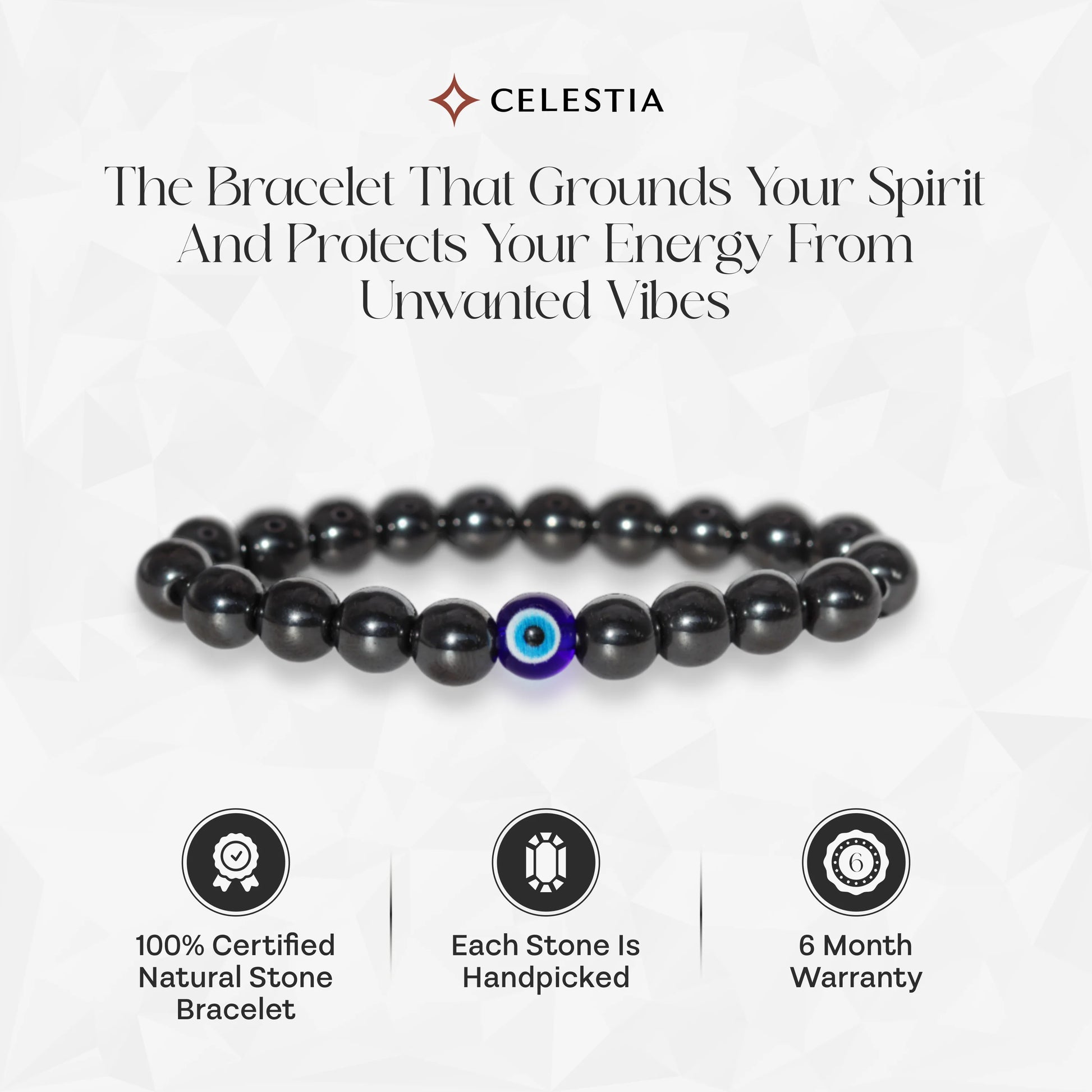 Shield yourself from negativity with the Evil Eye Protection with Hematite Natural Stone Bracelet from Celestia. This striking Evil Eye Bracelet combines the timeless protective power of the Evil Eye symbol with the grounding and stabilizing energy of hematite, crafting a spiritual bracelet that’s both a talisman and a work of art. Ideal for those seeking spiritual defense and inner strength, this natural stone bracelet offers a perfect balance of protection and style.