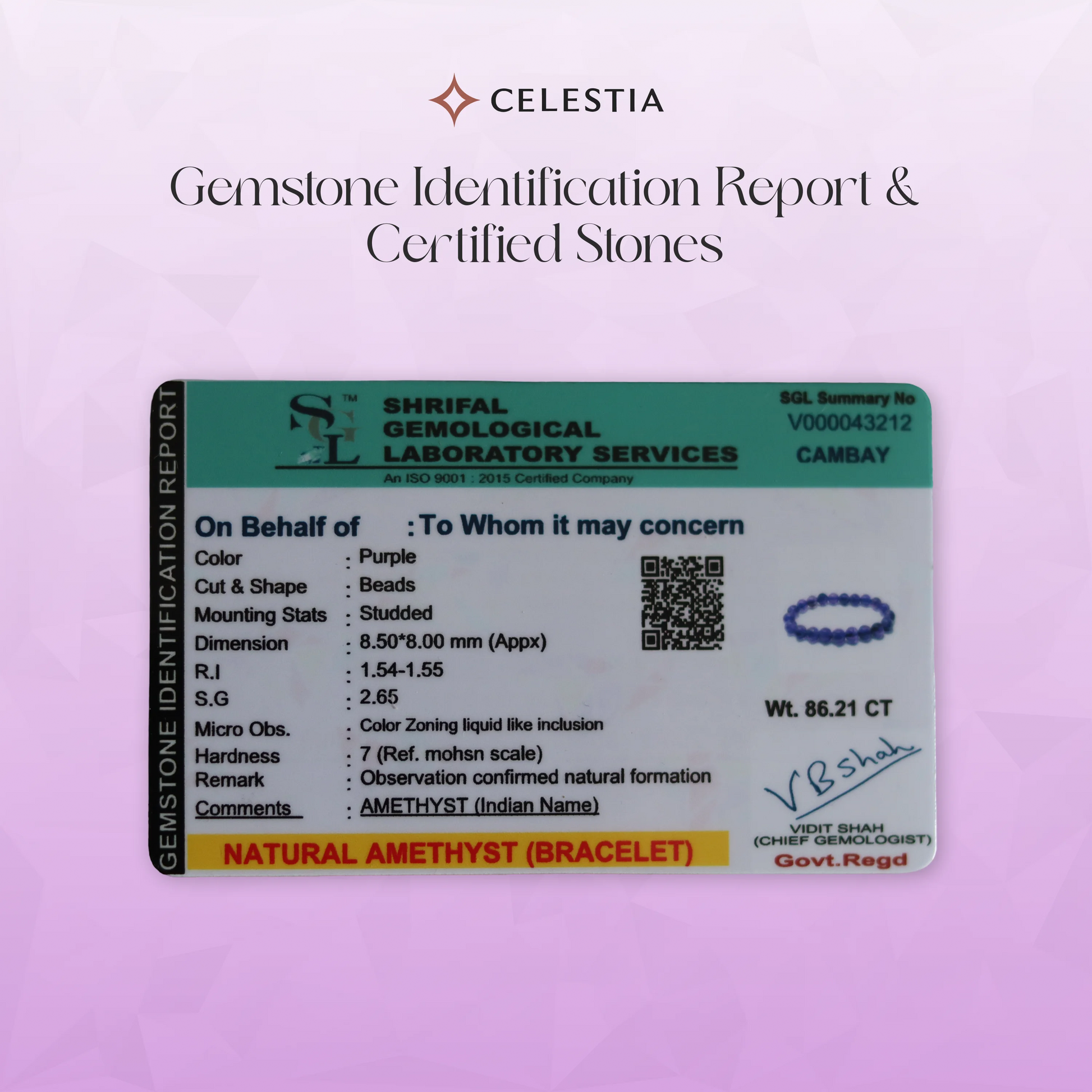 Each bracelet is crafted with authentic natural gemstones, and to guarantee its quality and energy, every piece includes an authentication certificate from a renowned lab in India.