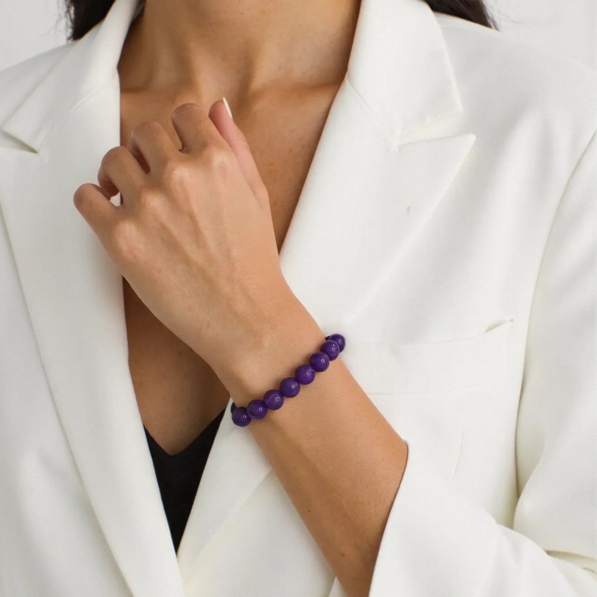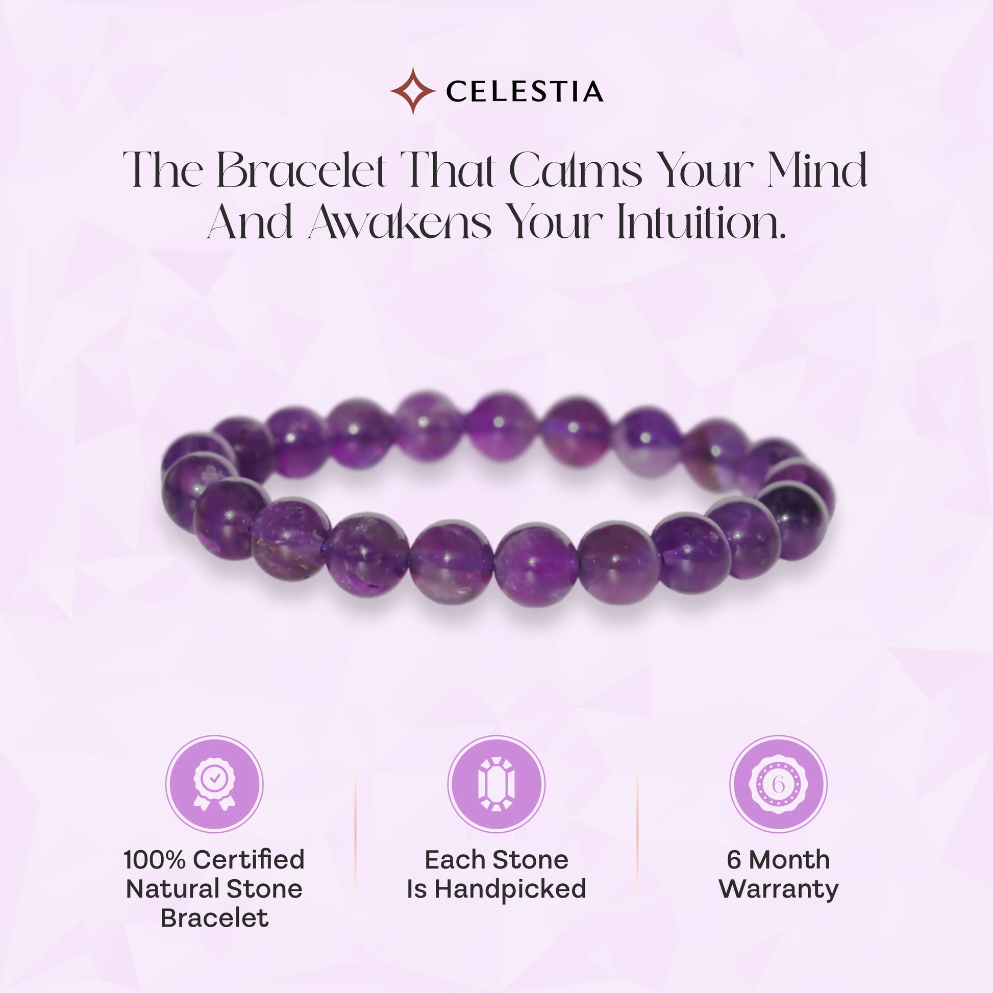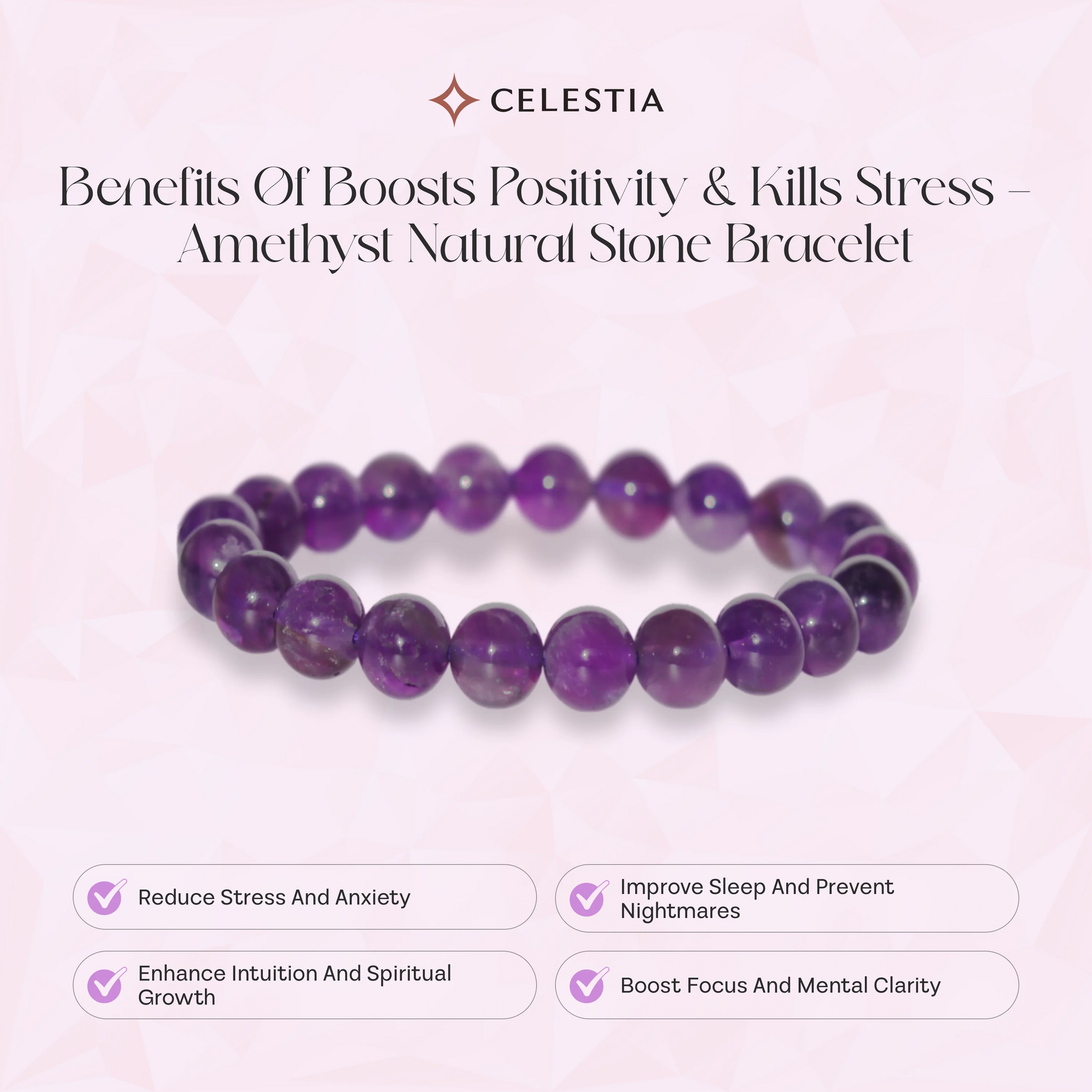 Step into a world of tranquility with Celestia’s Boosts Positivity & Kills Stress - Amethyst Natural Stone Bracelet. Known as the “Stone of Peace,” Amethyst is revered for its ability to calm the mind, relieve stress, and promote emotional balance. It enhances intuition and spiritual awareness, making it a must-have spiritual bracelet for those seeking harmony in life.