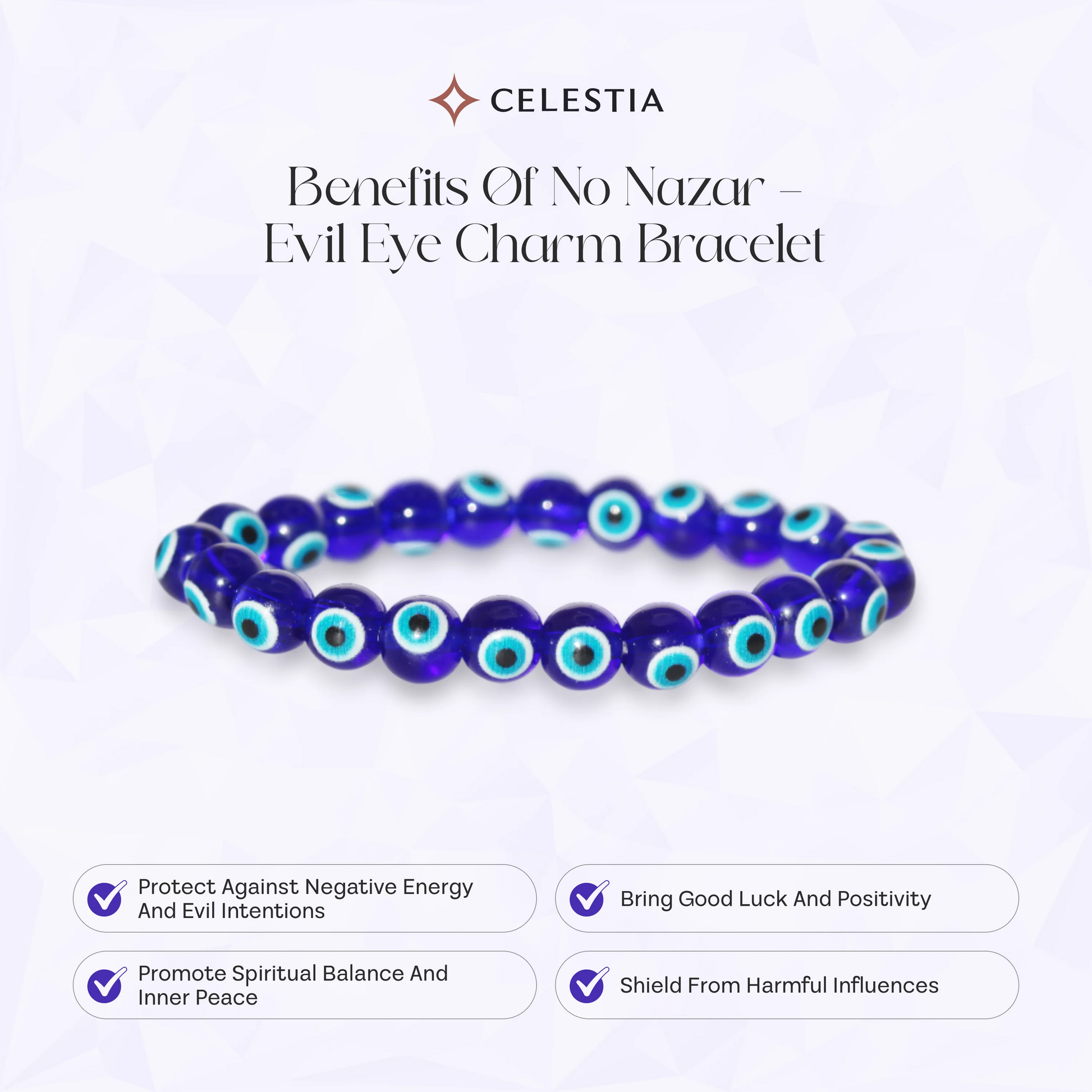 Shield yourself from negativity with Celestia’s No Nazar - Evil Eye Charm Bracelet. Rooted in ancient traditions, the Evil Eye symbol is believed to protect the wearer from harmful energies and bad intentions. This spiritual bracelet is a timeless accessory, perfect for those who seek protection, positivity, and inner peace.