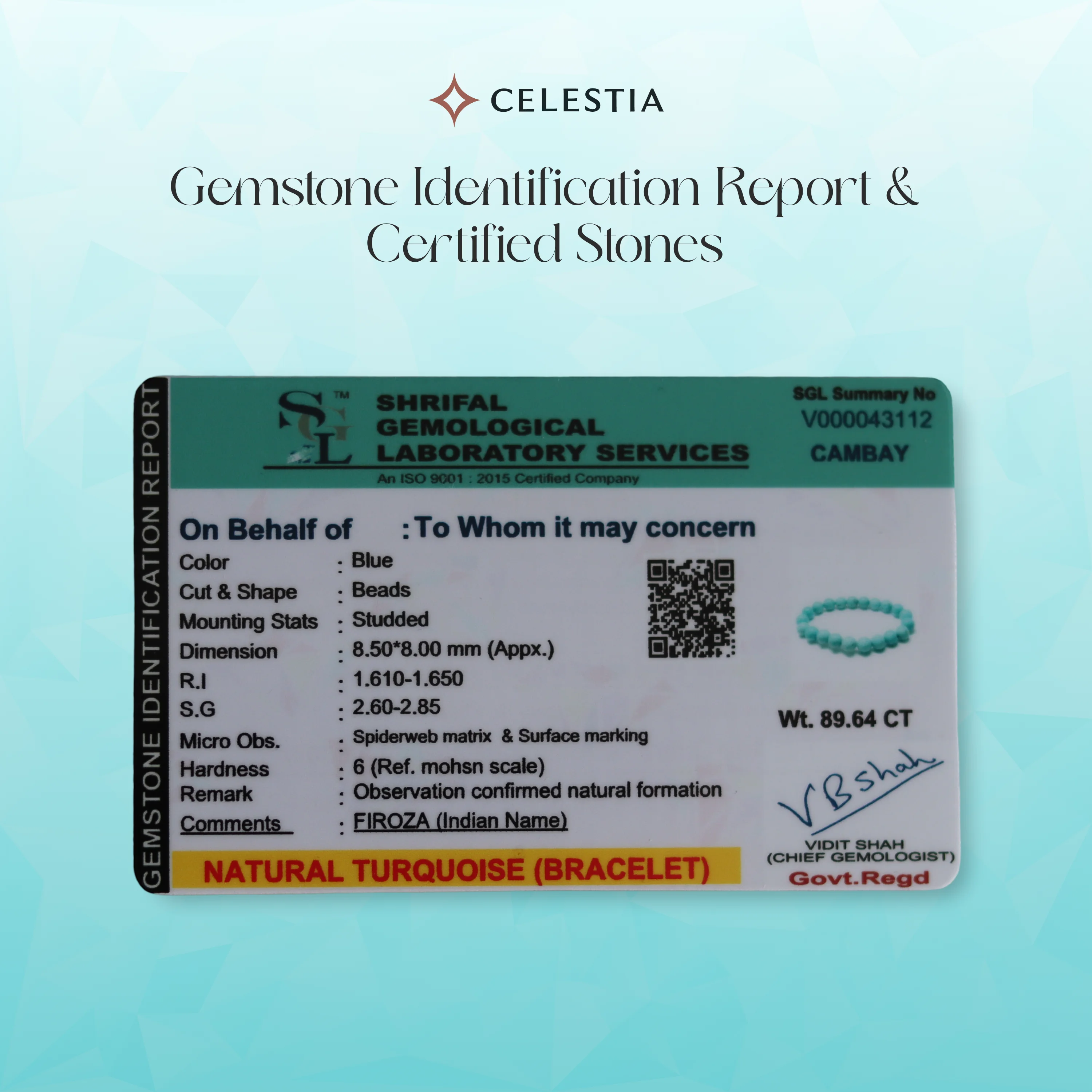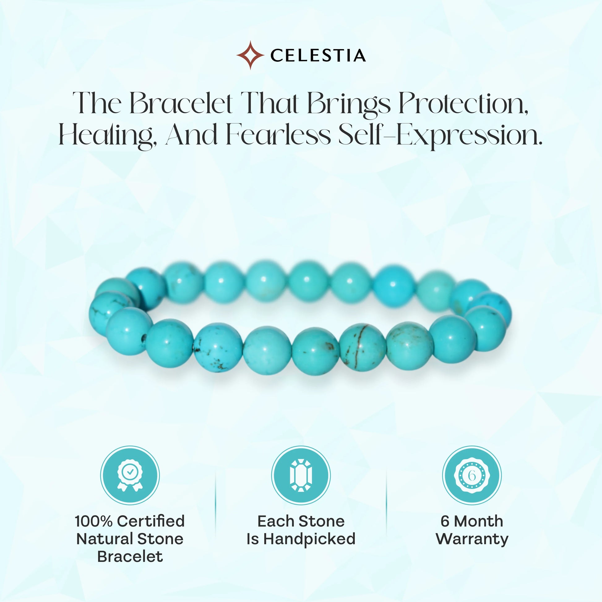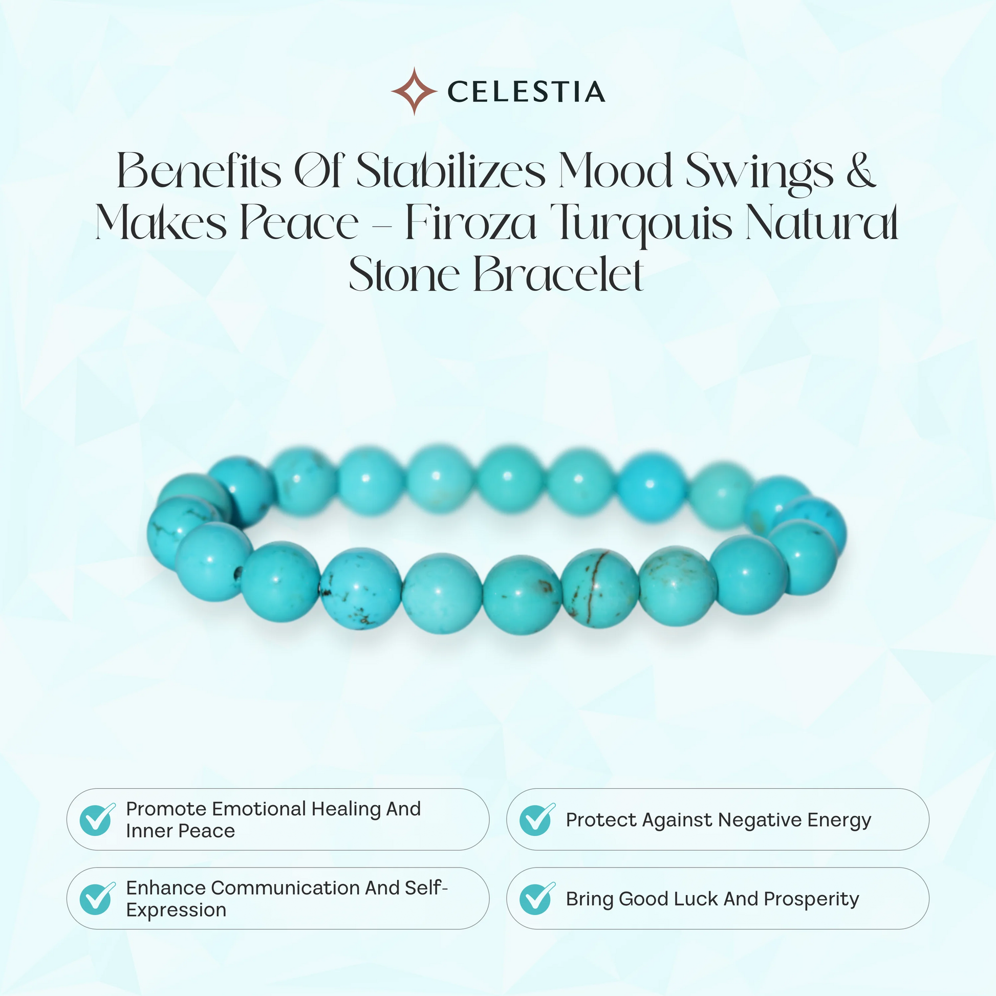 Experience emotional stability and deep tranquility with Celestia’s Stabilizes Mood Swings & Makes Peace - Firoza (Turquoise) Natural Stone Bracelet. A revered gemstone for centuries, Firoza (Turquoise) is known for its ability to balance emotions, promote peace, and protect against negative energy. It is the perfect spiritual bracelet for those struggling with mood swings, anxiety, or stress.